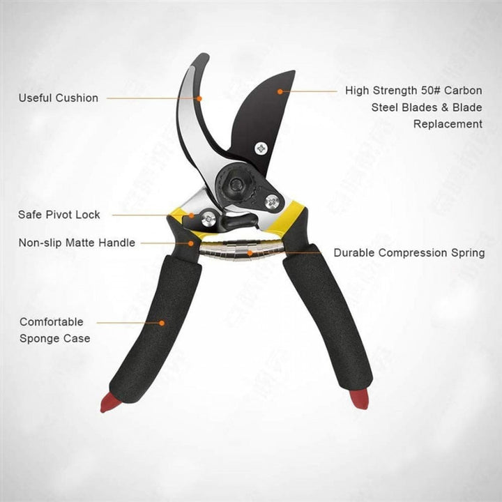 - SAFE GARDENING TOOL – Shock absorption system eases impact and protects the wrist. Hardened bolt and nut to customize blade alignment for efficient operation. Safety latch to keep blades in “closed” position when not in use.